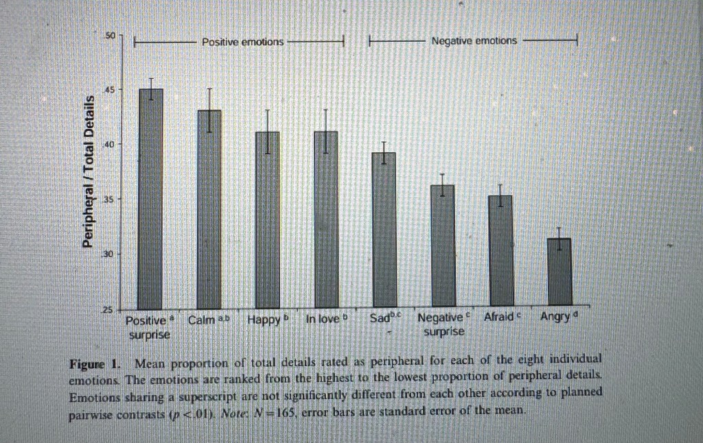Talarico, J. M., Berntsen, D., & Rubin, D. C. (2009). POSITIVE EMOTIONS ENHANCE RECALL OF PERIPHERAL DETAILS. Cognition & emotion, 23(2), 380–398. https://doi.org/10.1080/02699930801993999